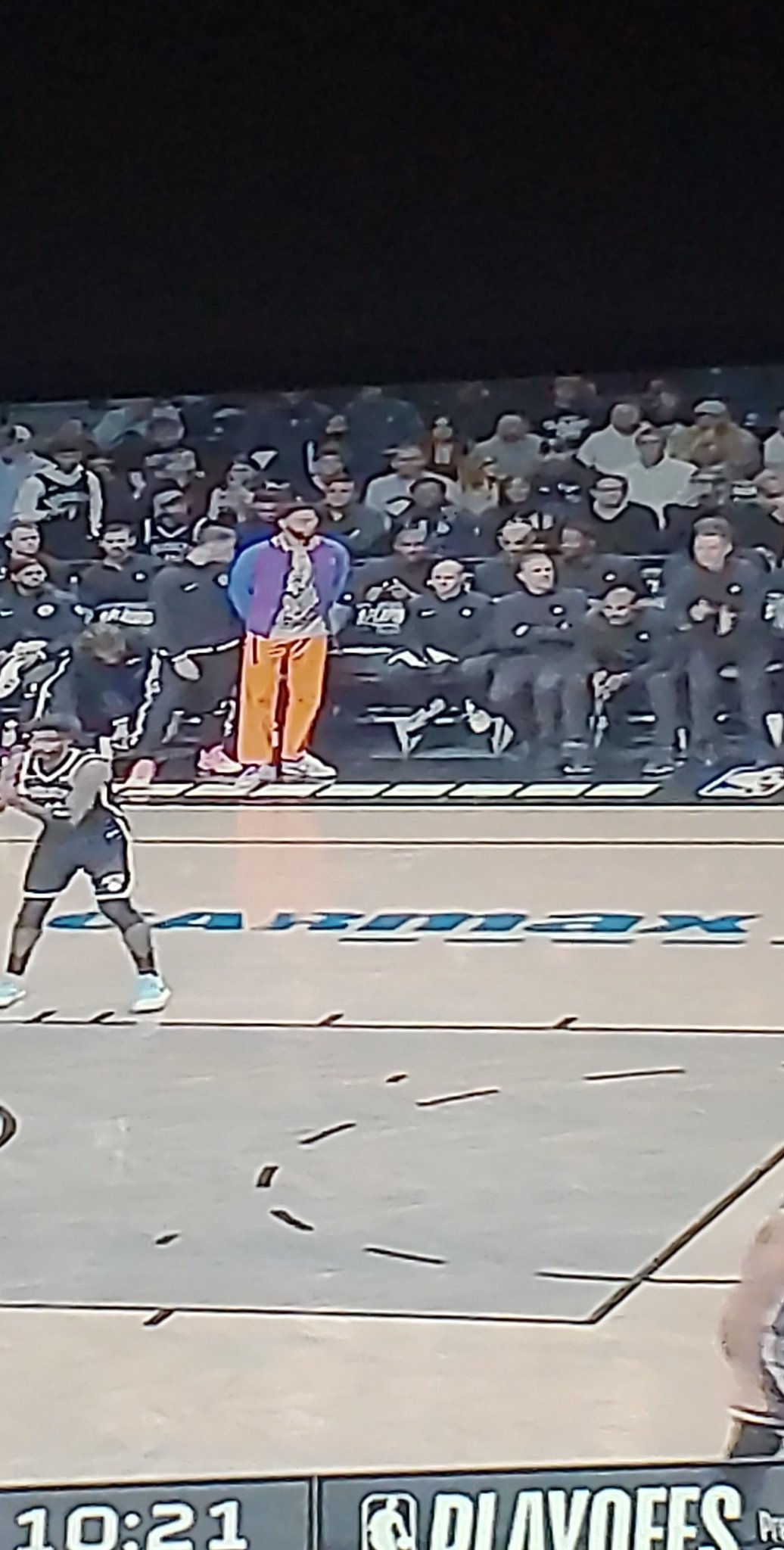 I know I'm beating a dead horse, but seriously as I'm watching some of these 1st half highlights (I was out 1st half so couldn't watch, just was using Reddit + this thread) but I'm LAUGHING at how ridiculous Ben Simmons looks in the sideline. Like seriously, everyone is wearing black or green or dark colors in the arena, and then you have this guy looking like the Rainbow Road map in Mario Kart  :laugh: :laugh: :laugh: