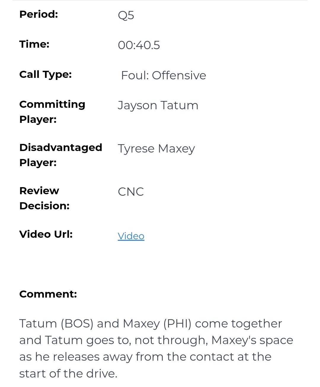 L2M report says the Tatum no-call was correct.