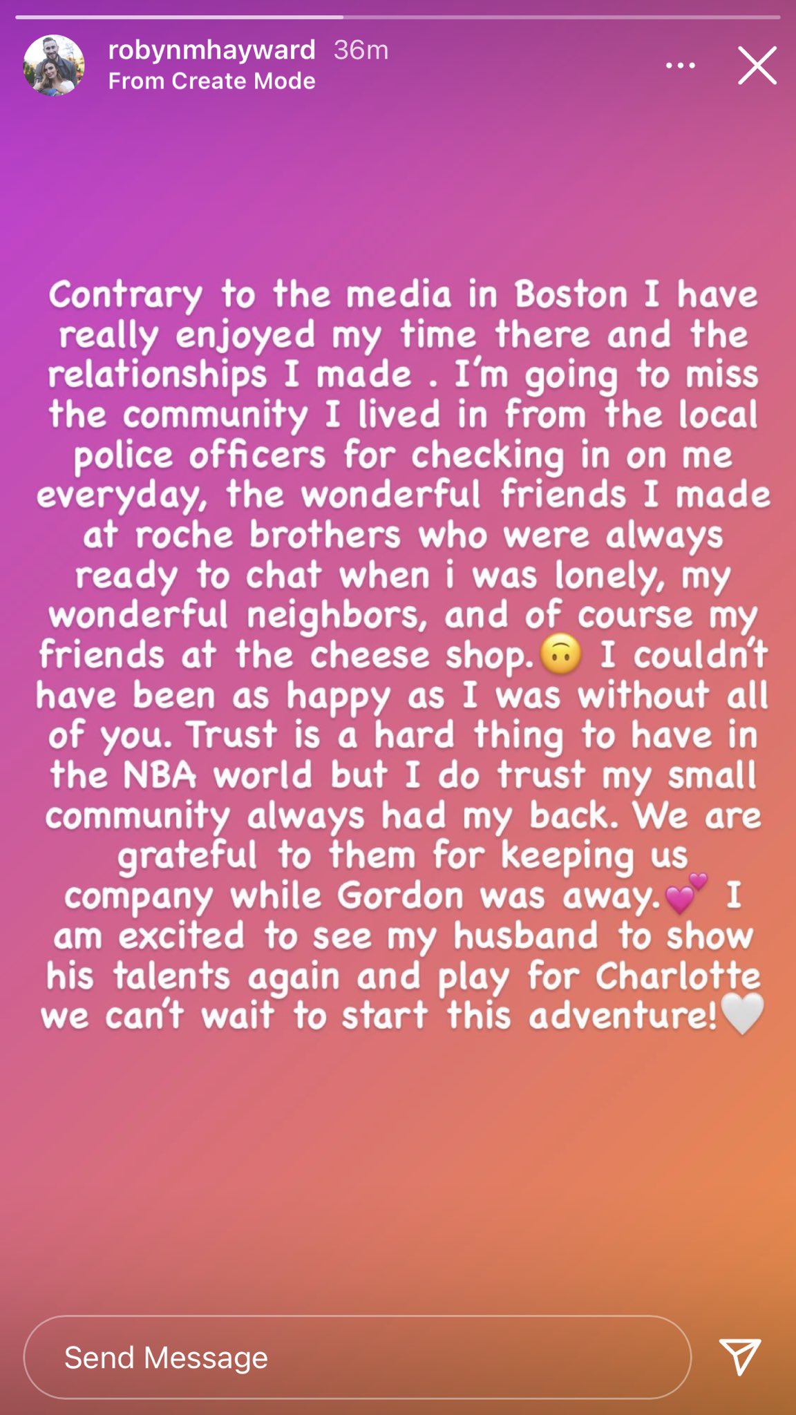 Last I heard from reports, Hayward’s family missed living in Boston.