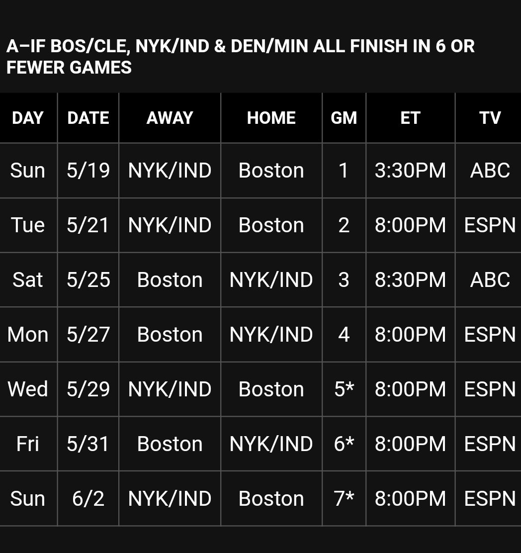 As long as one of IND/NY or DEN/MIN goes 7, our series starts Tuesday. I expect that.