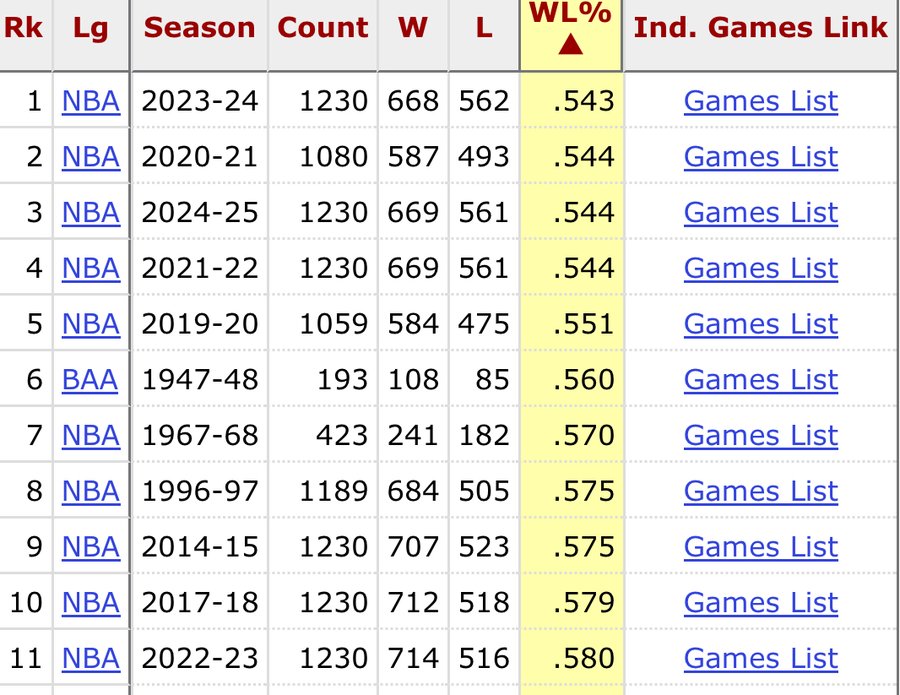 Another indicator that statistical randomness is overtaking intangibles as a determining factor.