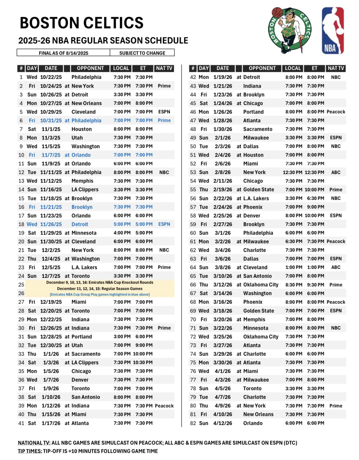 Author Topic: Celtics 2025-26 Schedule Released  (Read 3140 times)
