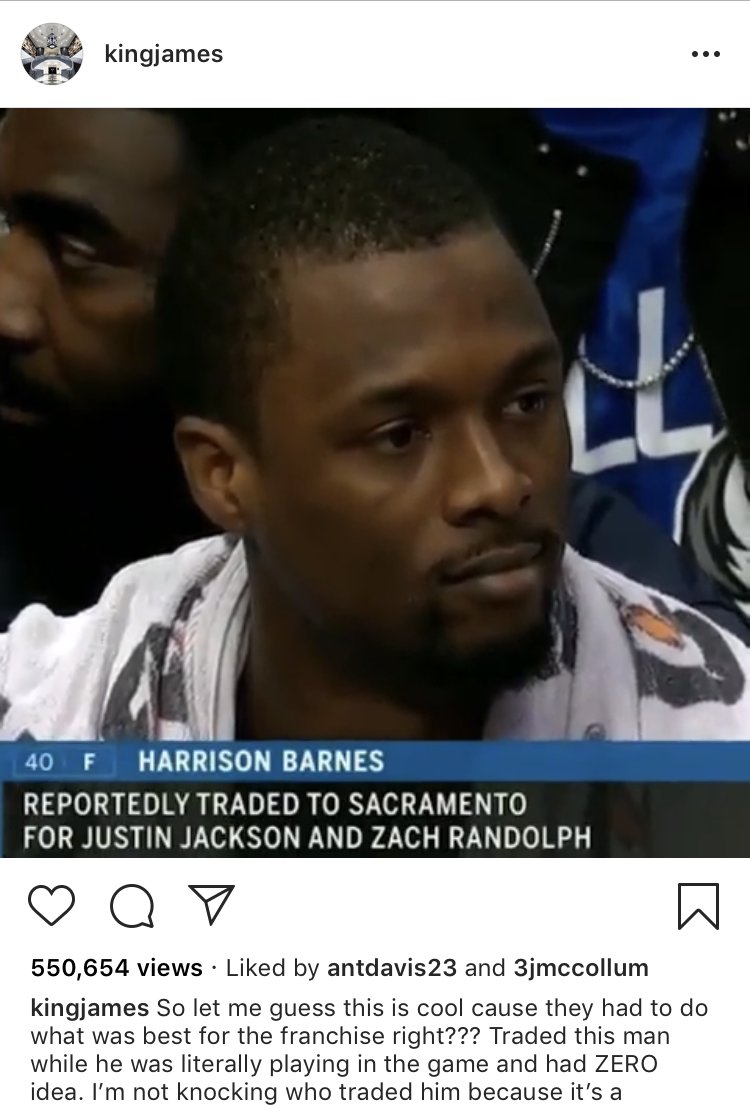 Harrison Barnes gets traded during game, Lebron whines about it